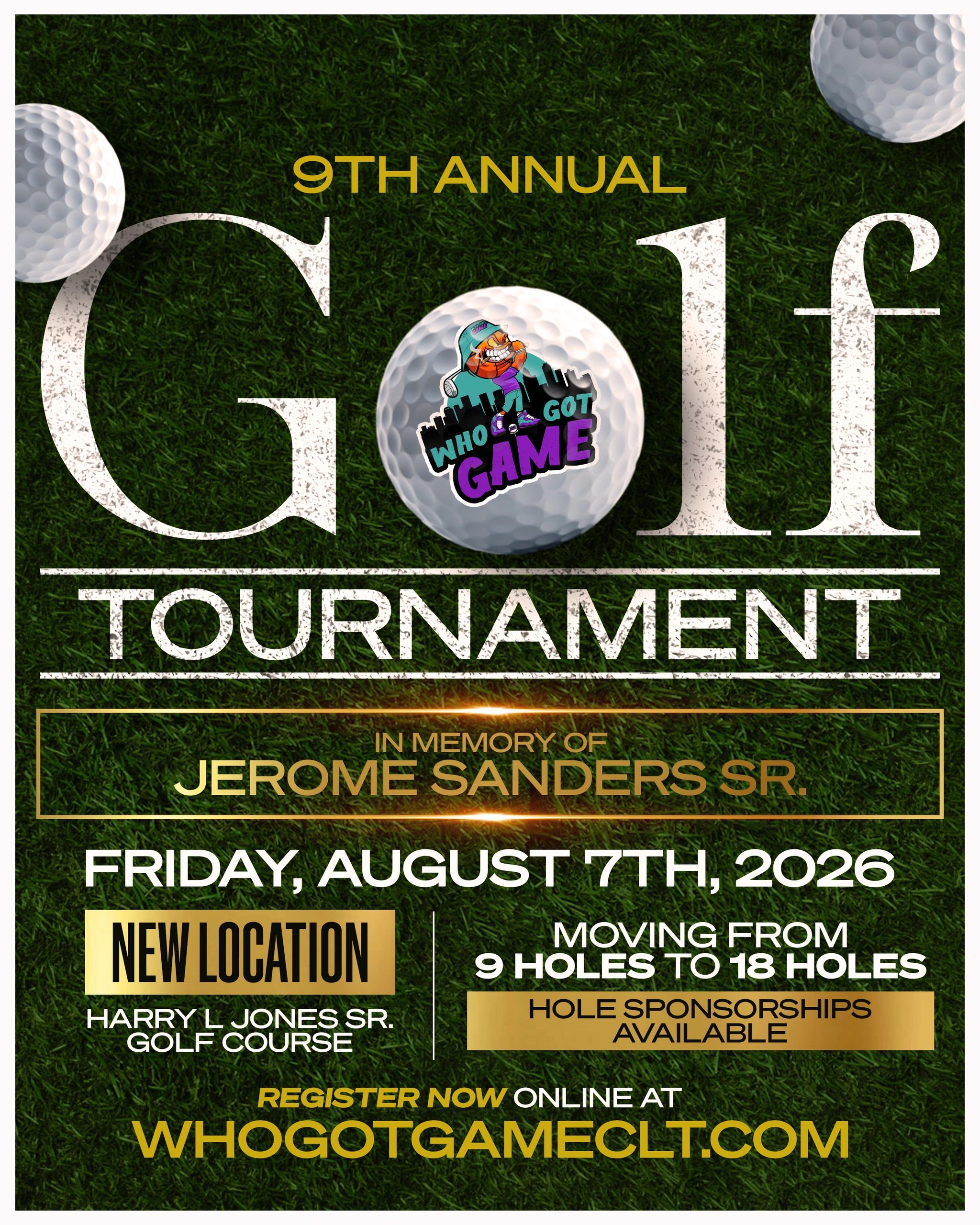 Become a Hole Sponsor for $750 at the 9th Annual Who Got Game Golf Tournament. This package includes signage with your logo at a designated hole, recognition in post-event thank-you communications, website recognition with your logo, and social media recognition. Additionally, you’ll receive a golf foursome package. Support scholarships for underprivileged kids while promoting your brand to our community.